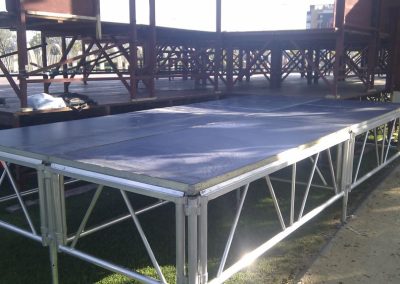 Contamos con escenarios modulares de distintos tamaños y alturas, ideales para todo tipo de eventos.
